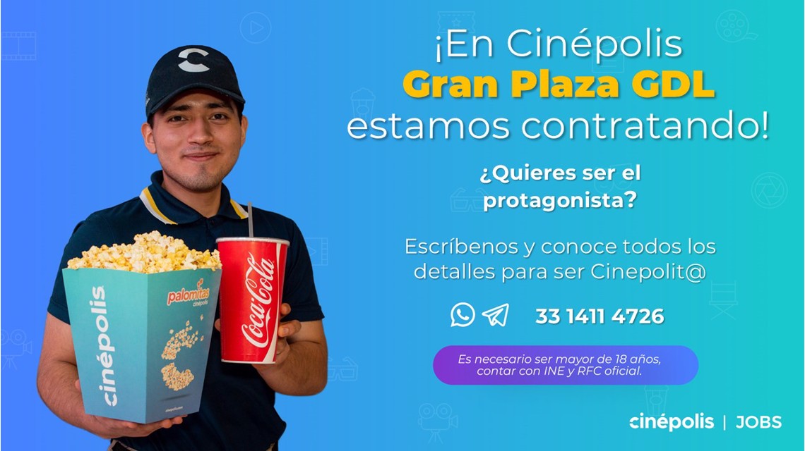 Auxiliares por temporada vacacional en Cinépolis VIP Gran Plaza GDL turno vespertino - Cinepolis VIP Gran Plaza GDL